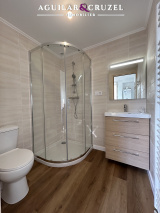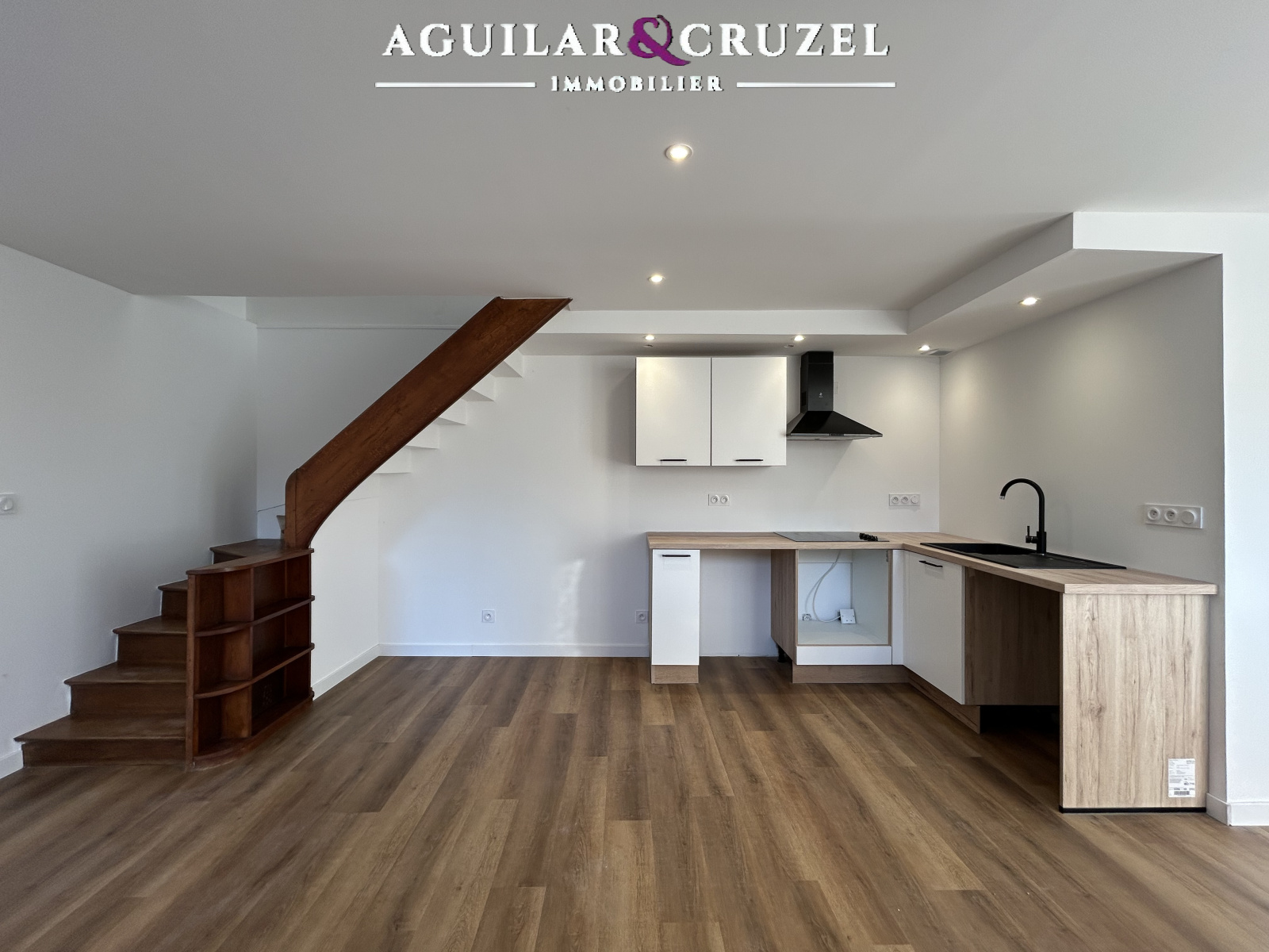 Le rez-de-chaussée propose une belle pièce de vie avec une cuisine ouverte neuve, aménagée et équipée, une salle d'eau neuve, elle aussi, avec WC.