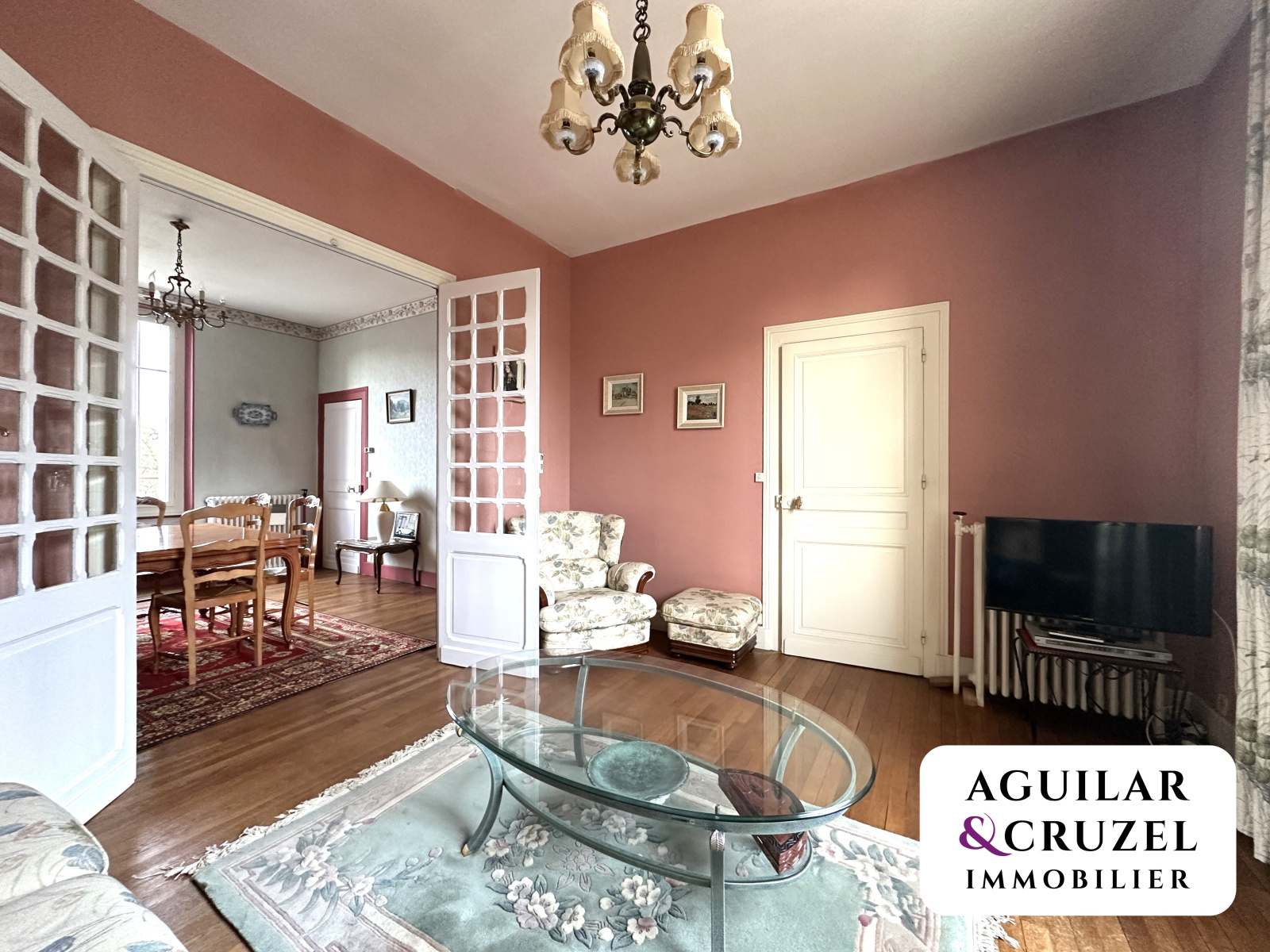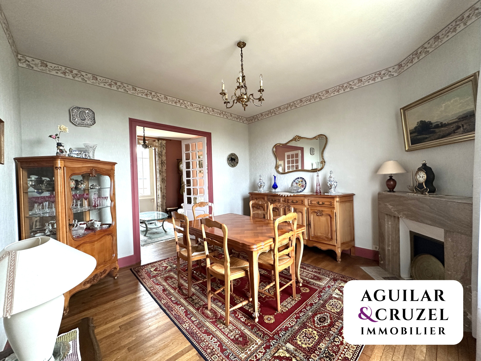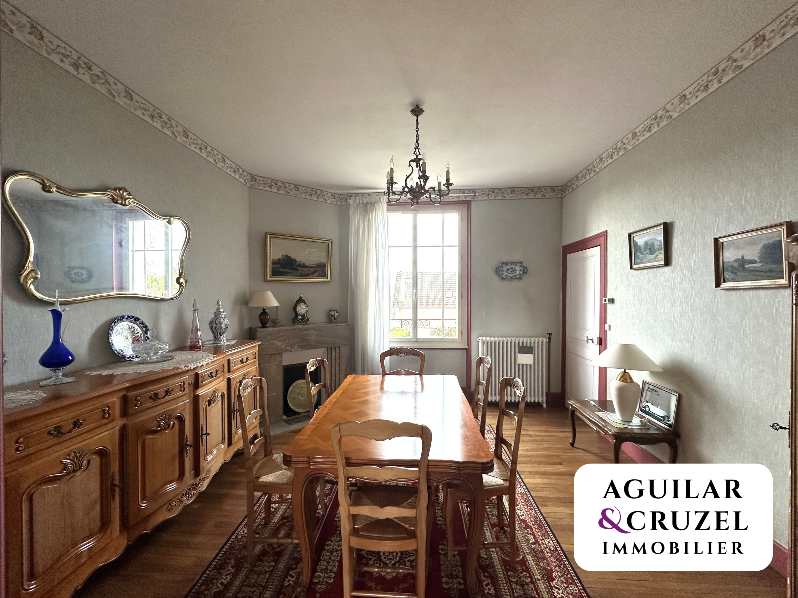 La maison dispose également d’un sous-sol total comprenant un garage avec porte motorisée, un atelier et une buanderie, le tout ouvrant sur un jardin clos et arboré.