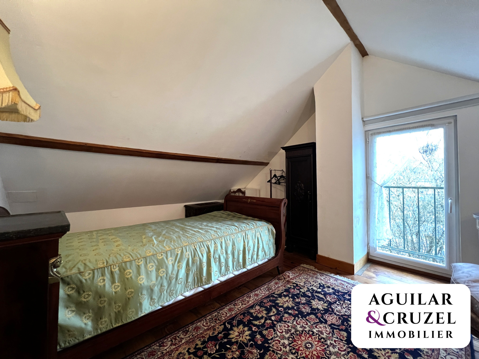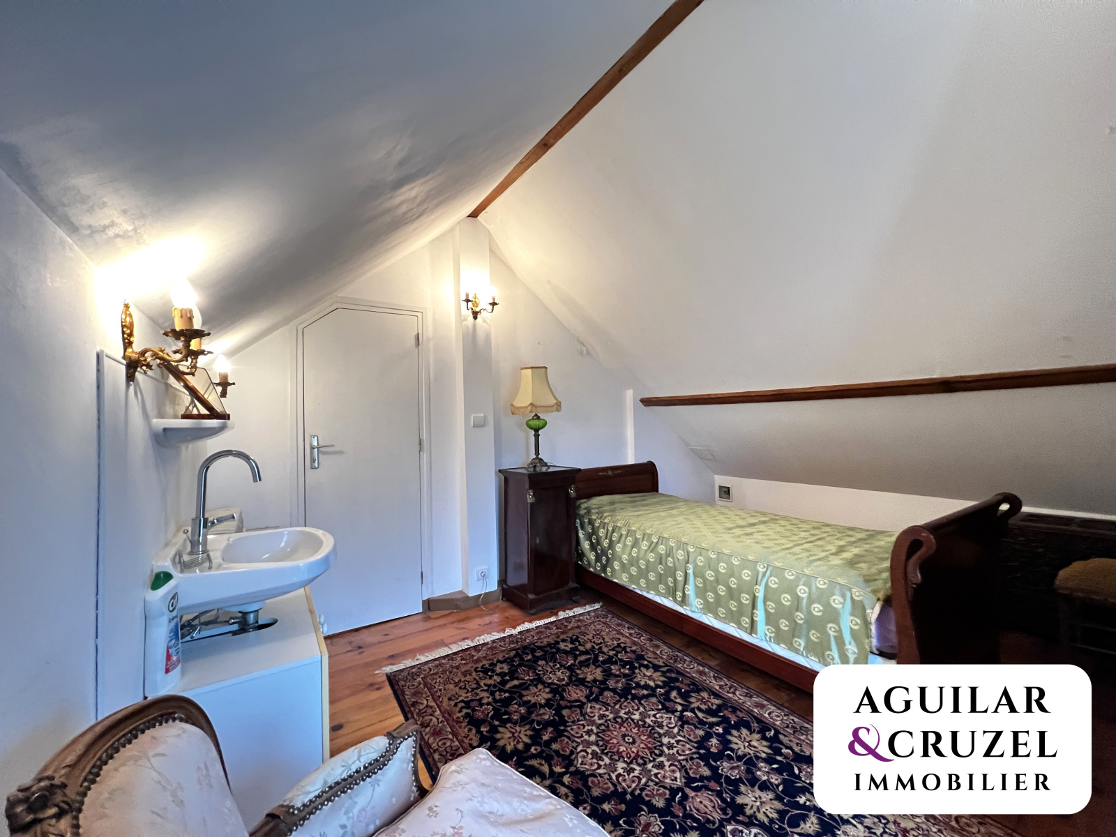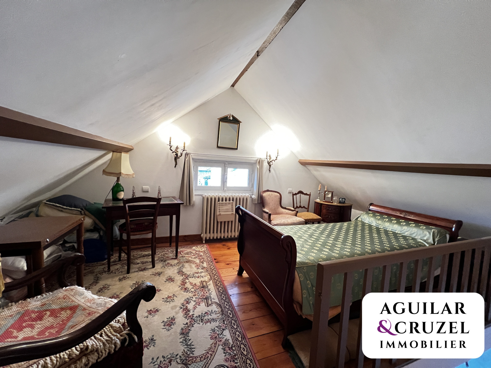 À l’étage, un palier pouvant faire office de bureau dessert une petite chambre.