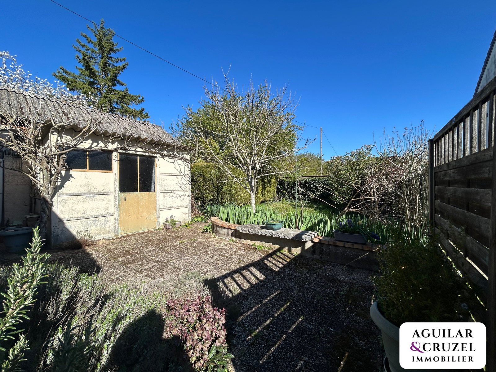 À l’extérieur, vous profiterez d’un terrain pour un espace jardinage et pour vos soirées d'été, avec une dépendance pour du stockage.